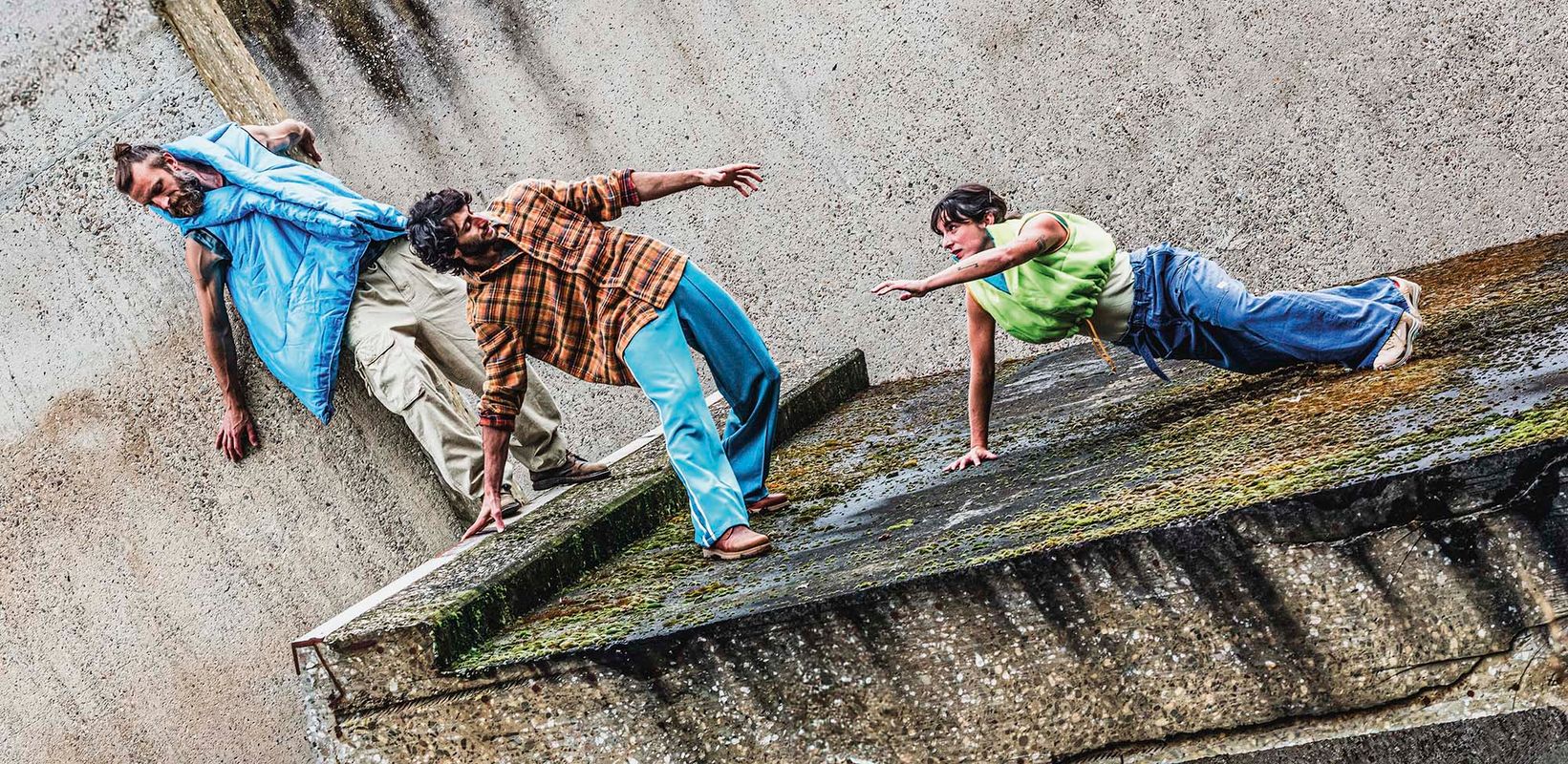 choreografie: Pia Meuthen | dans en acrobatiek: Francesco Barba, Davide Bellotta, Yaniv Dagan, Candela Murillo, Tarek Rammo, Clémentine Telesfort en Toon Theunissen | muziek: Davide Bellotta e.a. | compositie: Davide Bellotta en Strijbos & Van Rijswijk | scenografie: Sammy Van den Heuvel | kostuumontwerp: Sanne Reichert | lichtontwerp: Bart Verzellenberg